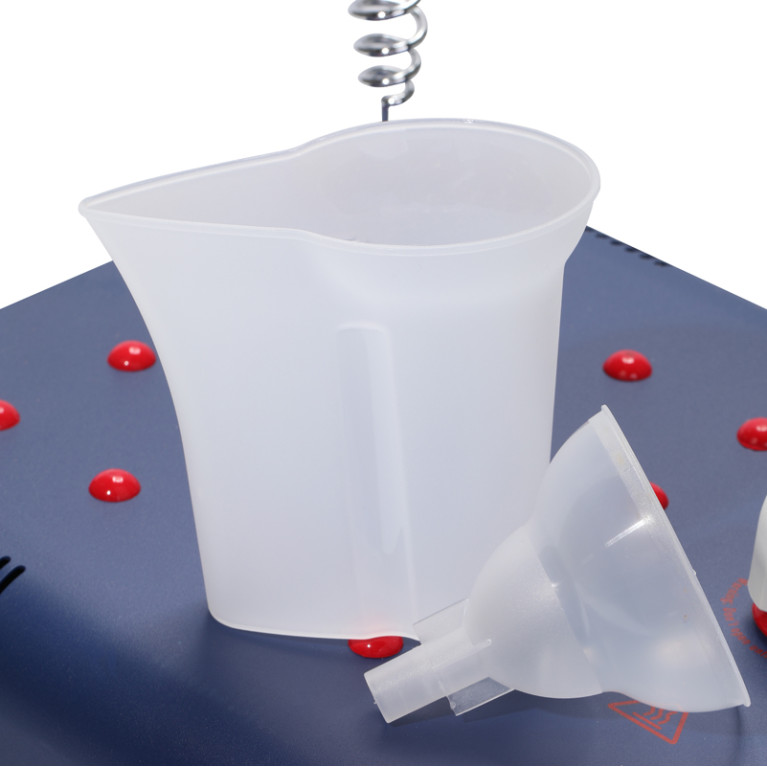 В комплект входит воронка, мерный стаканчик, индикатор уровня воды
